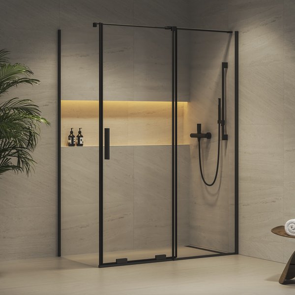 Combinez une porte de douche avec une paroi fixe et créez votre espace de douche d'une dimension allant de 80 x 100 à 90 x 140 cm.
