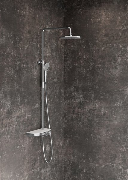 Il transforme la routine quotidienne en une expérience unique. La douche de tête pivotante suffisamment large ainsi que la douchette à main allient aspect pratique, style et confort. Les systèmes de douche double peuvent aussi être équipés d'un mitigeur thermostatique qui veille à ce que la température de l'eau soit constante pendant le bain.