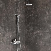 | X070162 | TE 094.02 Colonne de douche Termo avec fonction d'arrêt et plateau de rangement, chrome/noir |