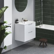 Chacun des modèles d'armoires Classic II est conçu de manière à procurer le plus d'espaces de rangement possible, mais cela dans une forme compacte qui ne prend pas trop de place dans la salle de bains. Afin que le rangement soit clair, le plus grand modèle de meuble sous lavabo double peut être équipé d'un tiroir bas avec des compartiments pour les accessoires les plus petits.