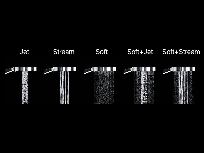 952.00 Un design universel et de nombreuses fonctions. Le corps élégant de la pomme de douche réunit cinq fonctions qui feront votre bonheur. Profitez des fonctions JET/STREAM/SOFT/SOFT+JET/SOFT+STREAM et faites agir les bienfaits de différentes combinaisons de jets d'eau sur votre peau.