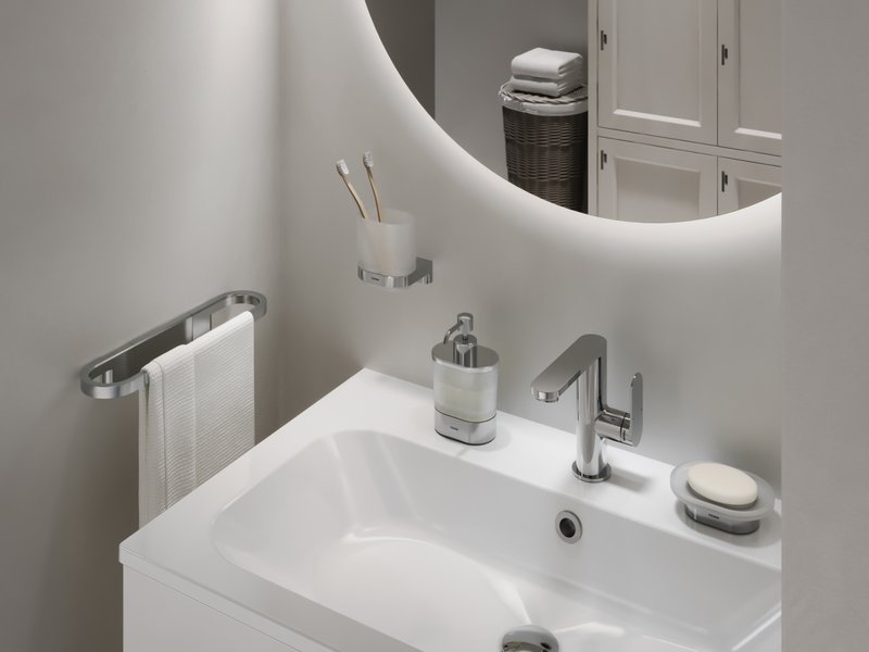 Le porte-savon en design Chrome II est très pratique dans la salle de bain pour un lavage rapide des mains. Le produit est disponible en chrome et noir mat.