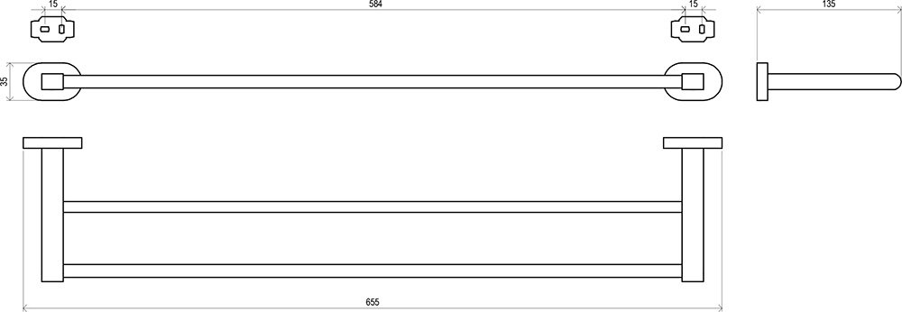 Il est conseillé de nettoyer l'extérieur de porte-serviette avec le produit RAVAK Cleaner Chrome. Montage avec quatre chevilles et deux plaques de fixation métalliques. Le pas des vis est de 16 mm.